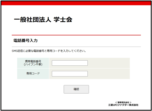 1 下記URLまたはQRコードよりアクセスし、SMS(ショートメッセージ)を受信する携帯電話番号と専用コード(18860418)をご入力ください。